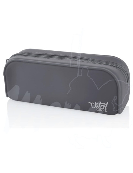 Portatodo de silicona de taco suave.Colores de gran resistencia con acabado mate ultrasoft muy agradable al tacto.Formato redondo.Ideal para uso escolar.Resistente al agua y fácil de limpiar.Cierre con cremallera de gran duración y resistencia.Silicona de alta calidad no tóxica y libre de BPA y BPS.Medida 18 x 7 x 5 cm.Cantidad 4 estuches en color gris.