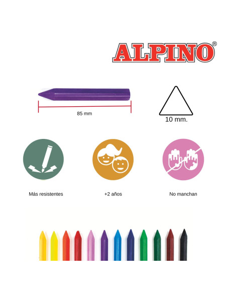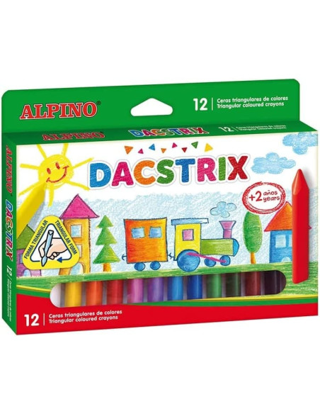 Caja con 12 ceras triangulares DACSCTRIX colores surtidos.