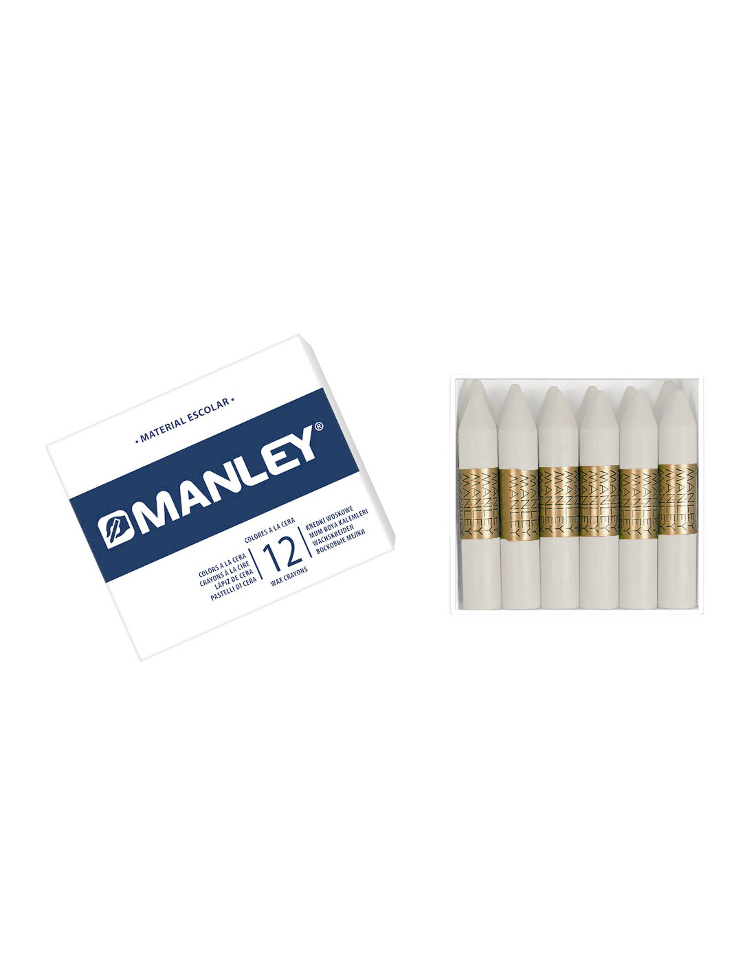 Caja con 12 ceras redondas MANLEY unicolor BLANCO (1).