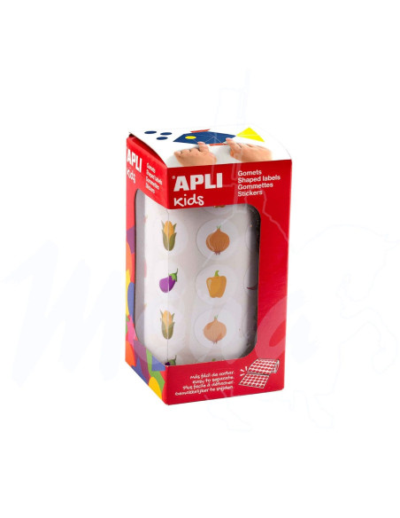 Contiene 900 gomets con distintas formas: tomate,