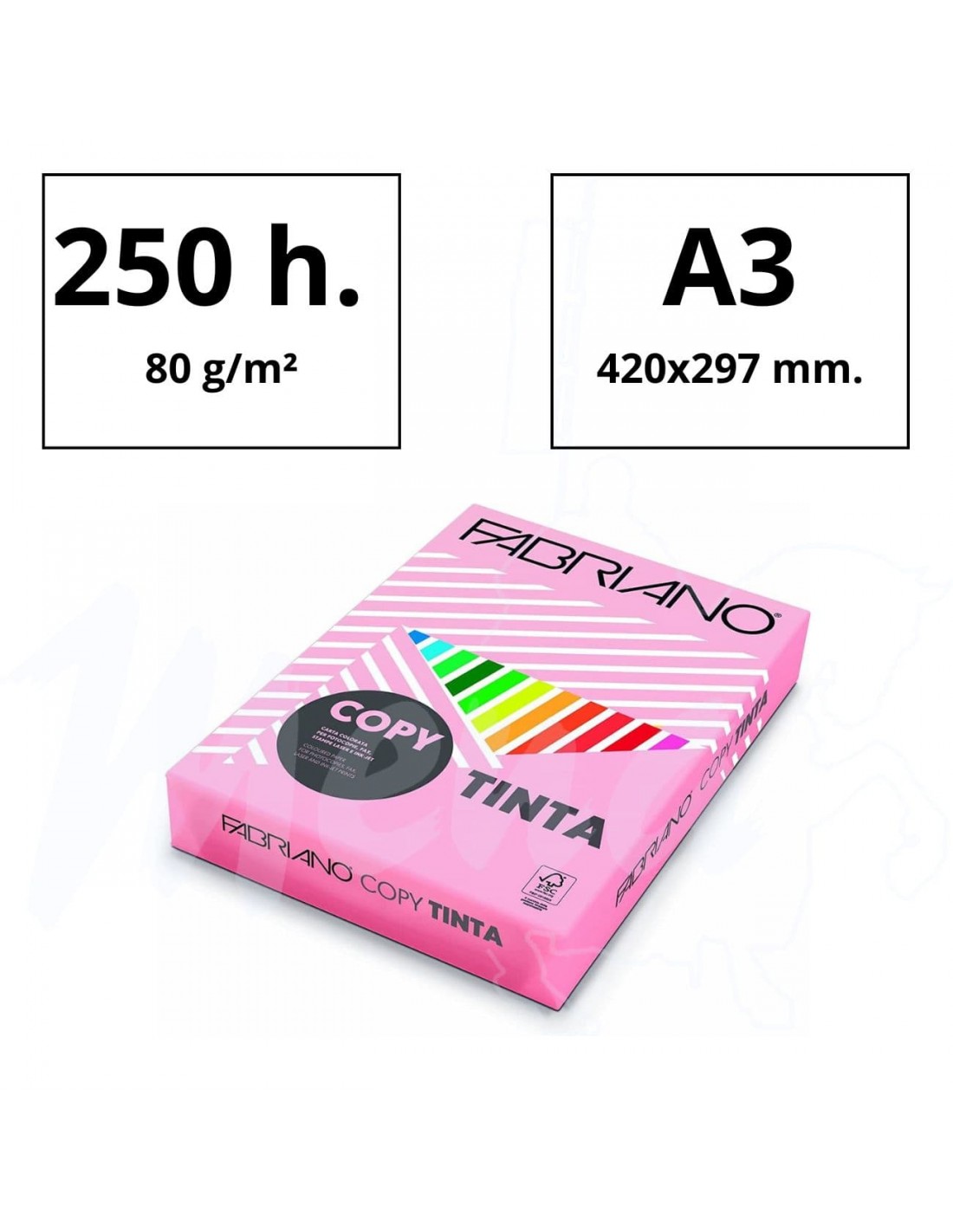 Paquete con 250 hojas de papel de color 80gm.
