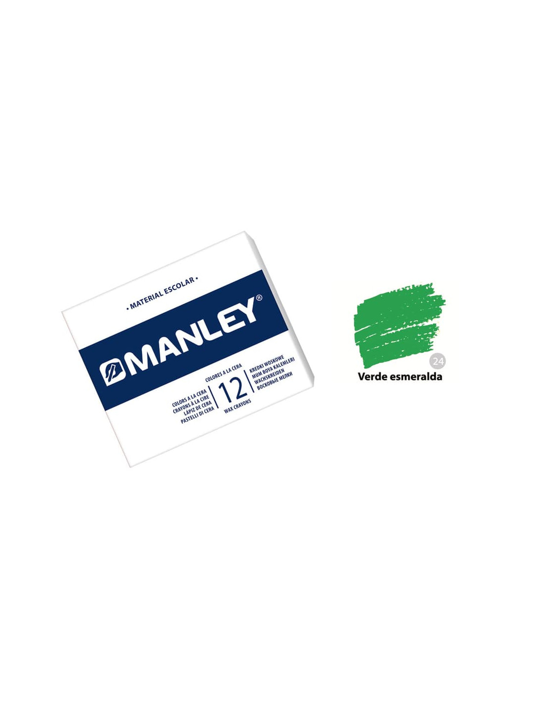 Caja con 12 ceras redondas MANLEY unicolor VERDE ESMERALDA (24).