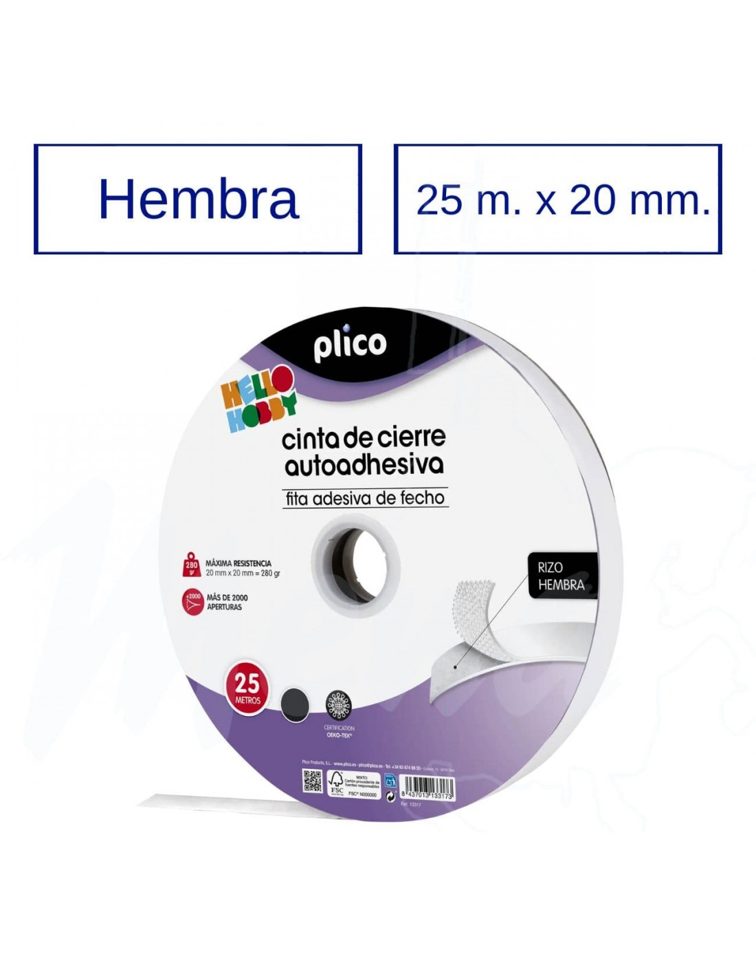 La cinta se utiliza en conjunto con su parte complementaria (macho) para formar un cierre tipo velcro.