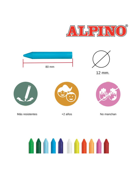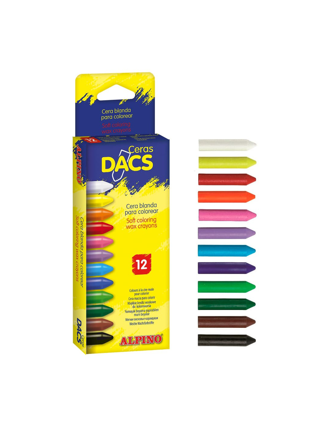 Caja con 12 ceras redondas DACSCOLOR colores surtidos.