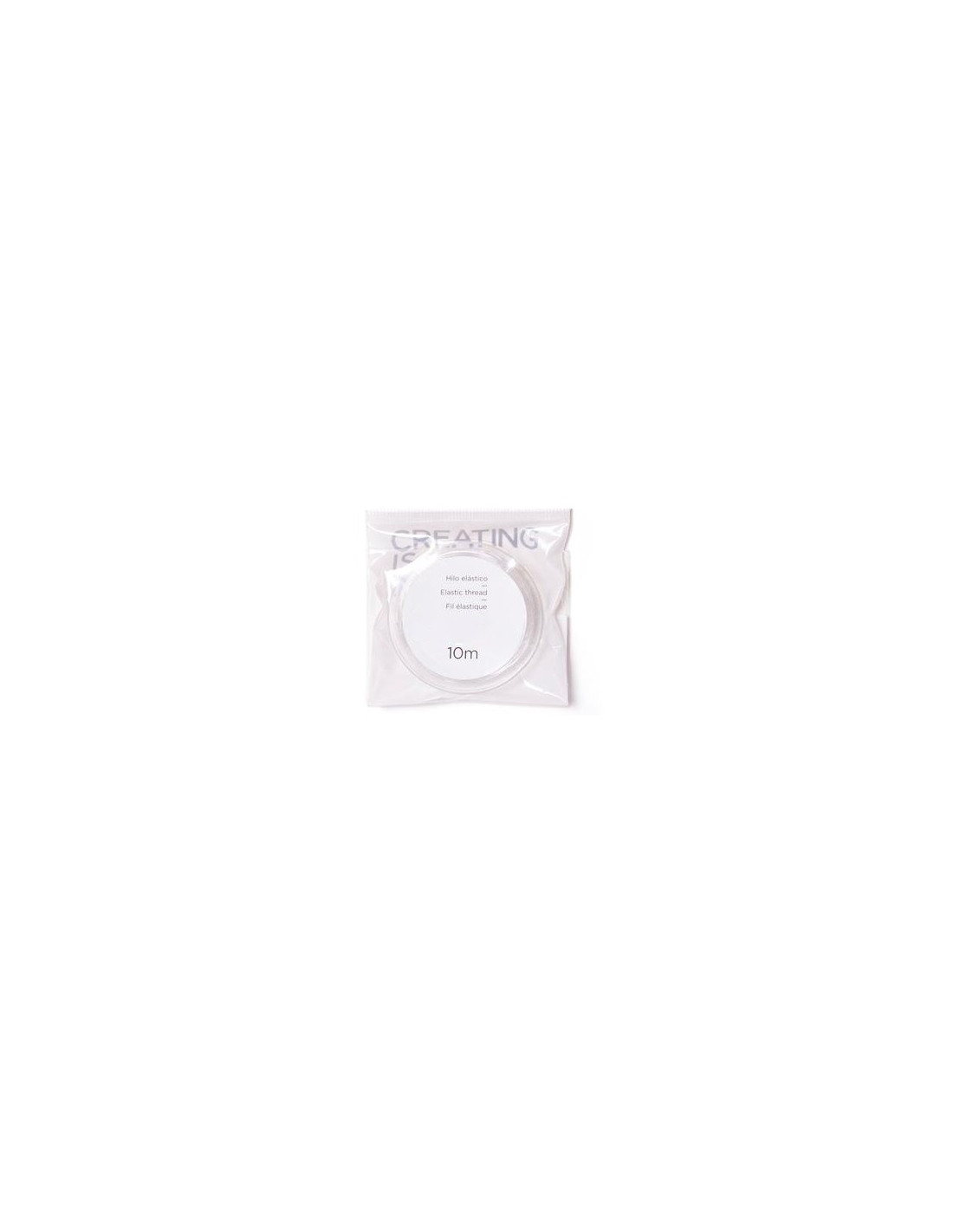 Rollo de hilo flexible de 0,8 mmm. que al estirarlo no se deforma. Ideal para realizar pulseras o anillos que no necesiten cierre. MEDIDA 10 m. Color transparente.
