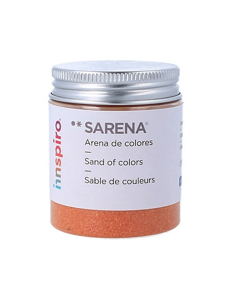Arena de colores para creaciones de originales manualidades. Podrás llevar a cabo la técnica de pintar sin utilizar pinceles. Decora superficies como madera, cristal, papel.. MEDIDA 100 g. Color naranja