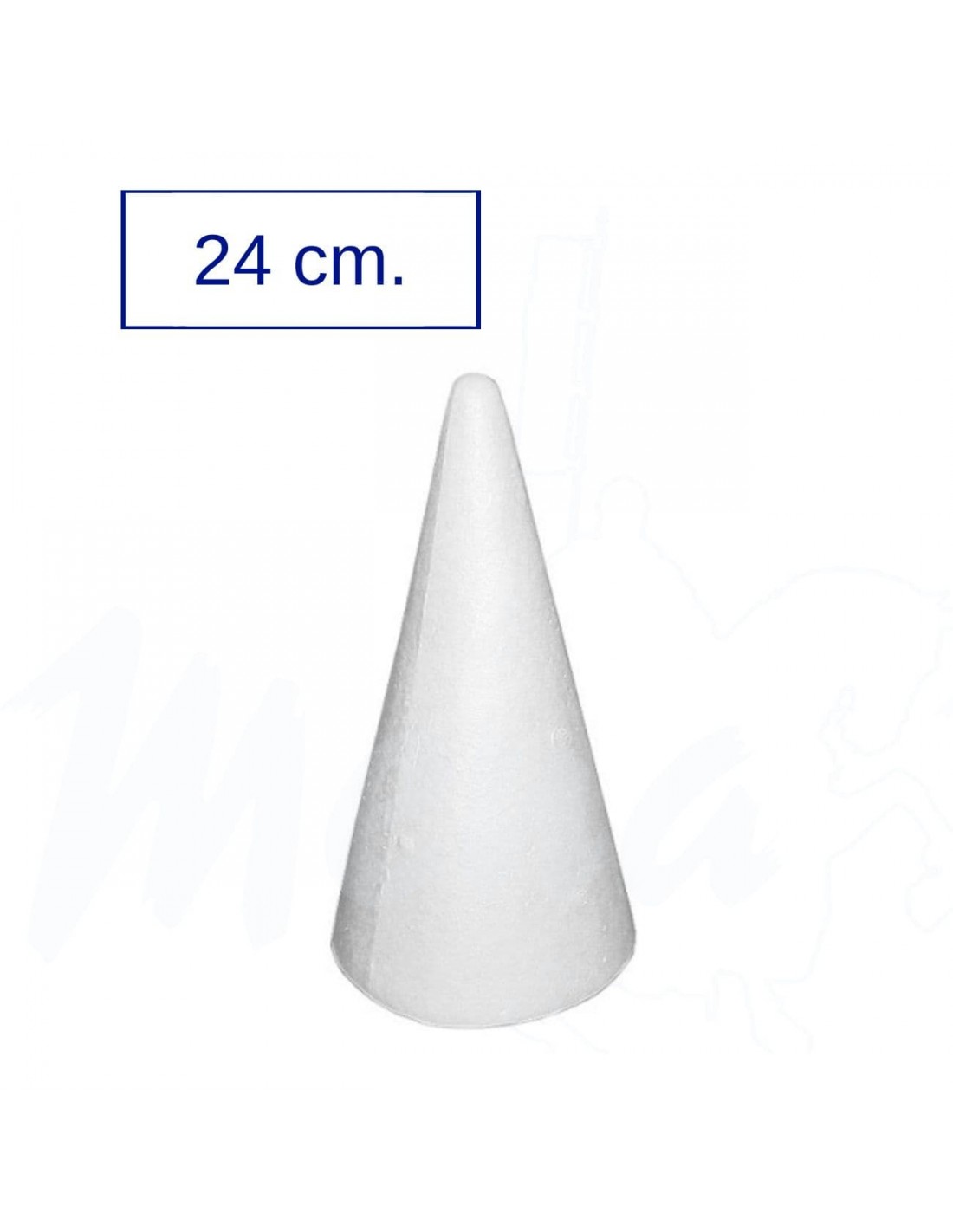 Cono de porexpán, ideal como soporte para realizar trabajos manuales como pintar, decoupage con servilletas o incrustar fieltro. MEDIDA 24 cm.