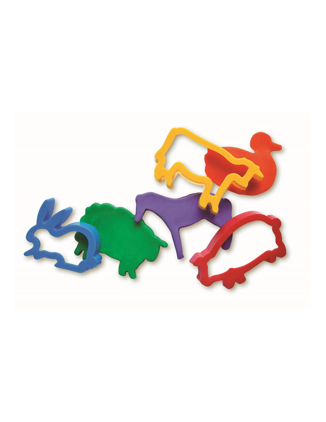 Bolsa con 6 moldes de animales que viven en una granja para modelar la plastilina y blandiver JOVI.