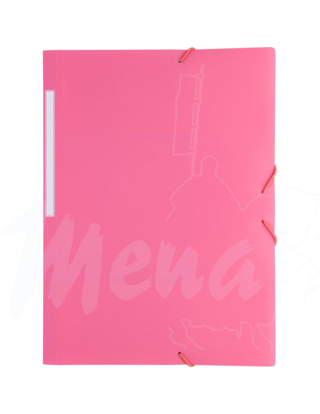 Carpeta con gomas y solapas en tamaño folio. Fabricada en Polipropileno translucido con gomas y tres solapas en el interior. Capacidad para unas 100 hojas.