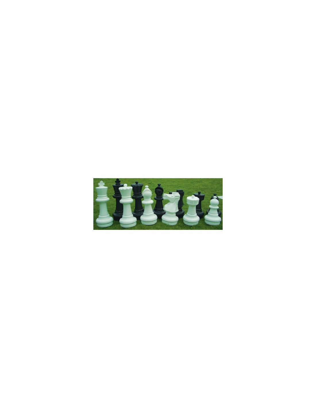Juego de piezas gigantes de ajedrez. Incluye 32 piezas ( 16 por color). Trabaja la concentración y la estrategia en grupo. Fabricado en material resistente. Altura rey 63,5 cm