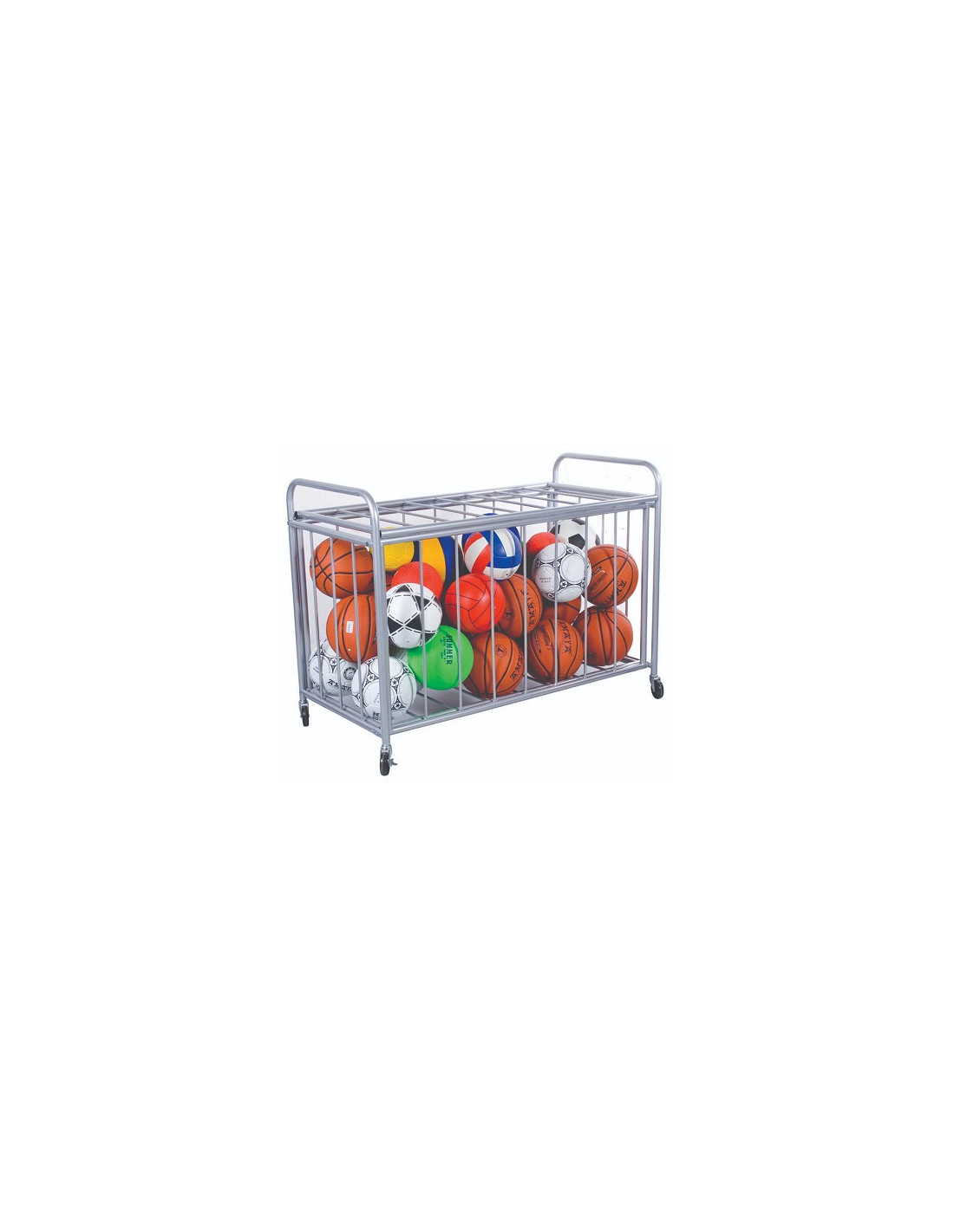 Carro de almacenamiento de balones con ruedas.