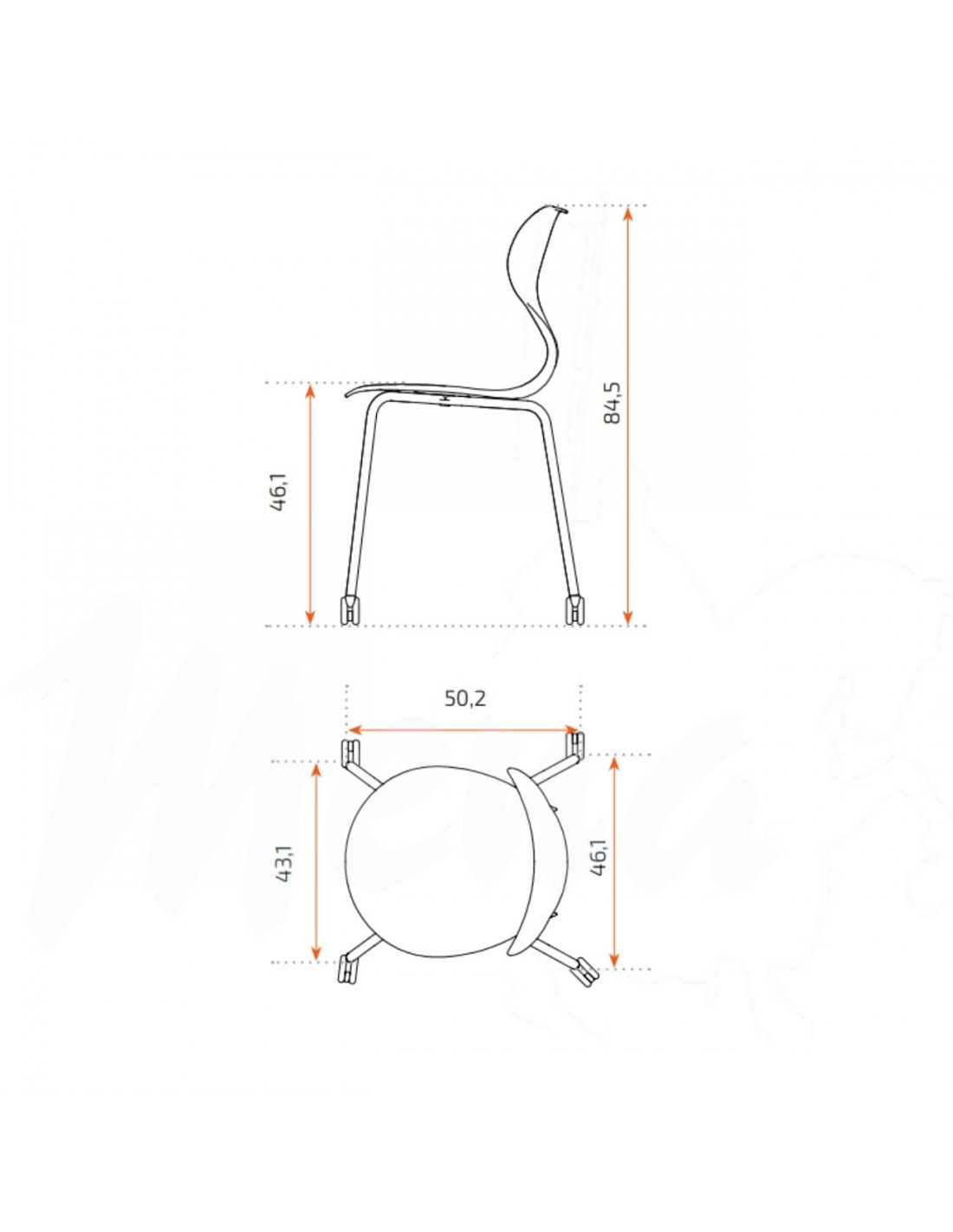 Incorpora una base de polipropileno en forma de estrella y una estructura metálica de cuatro patas con acabado WARM GRAY, equipada con ruedas que facilitan el desplazamiento y aportan movilidad y versatilidad al aula.