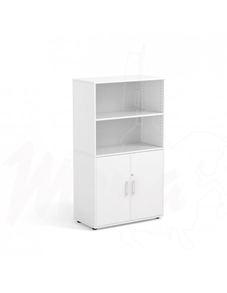 Armario escolar de 160 cm. Diseñado para ofrecer una solución de almacenamiento completa, segura y funcional en entornos educativos. Cuenta con dos espacios abiertos en la parte superior y dos puertas con espacios inferiores en la parte inferior, facilitando la organización del material escolar y siendo ideal para aulas orientadas al aprendizaje cooperativo. Las puertas están disponible en varios colores, permitiendo adaptar el armario a la estética de cada centro. Incorpora cuatro niveladores que permit