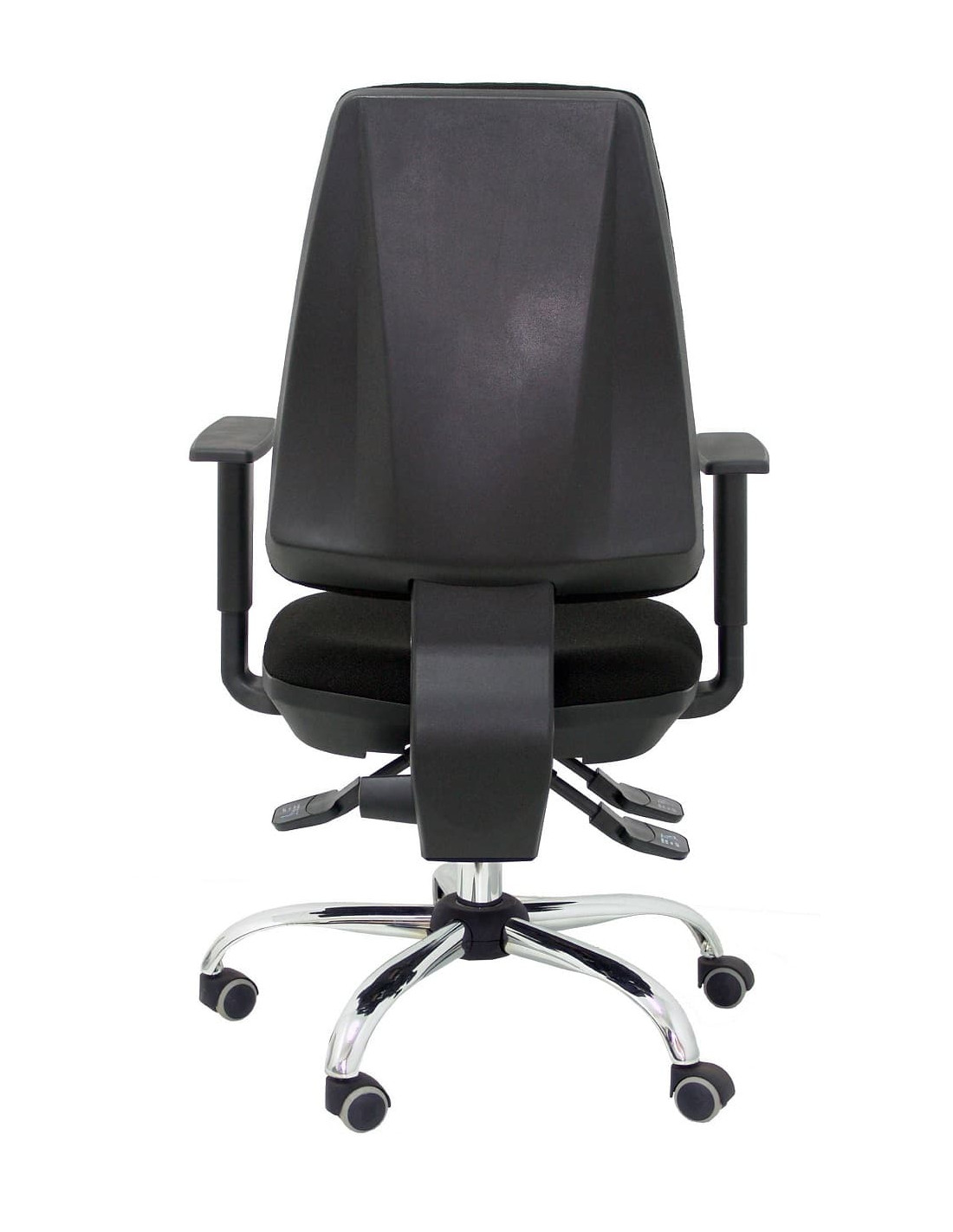 Silla de oficina ergonómica con mecanismo regulable en altura.