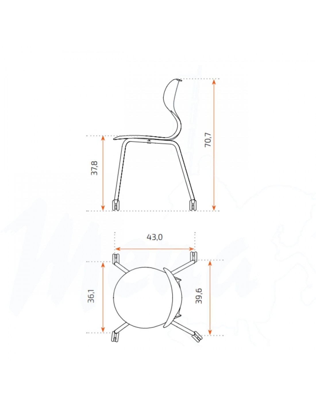 Incorpora una base de polipropileno en forma de estrella y una estructura metálica de cuatro patas con acabado WARM GRAY, equipada con ruedas que facilitan el desplazamiento y aportan movilidad y versatilidad al aula.
