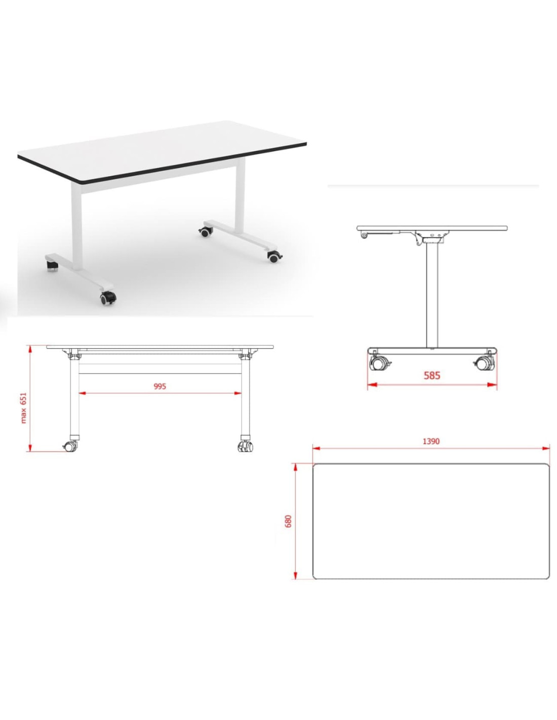 Altura mesa 65 cm.