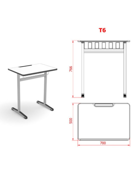 Pupitre escolar con cajón de rejilla y espacio