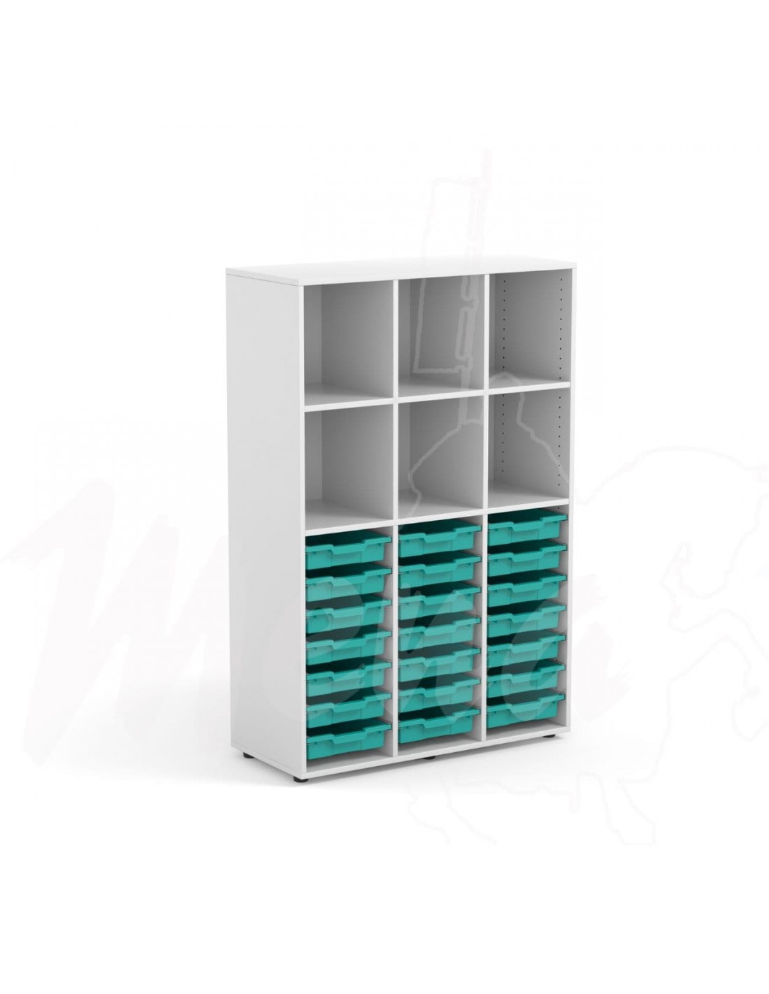 capacidad para 21 cubetas pequeñas y 6 espacios