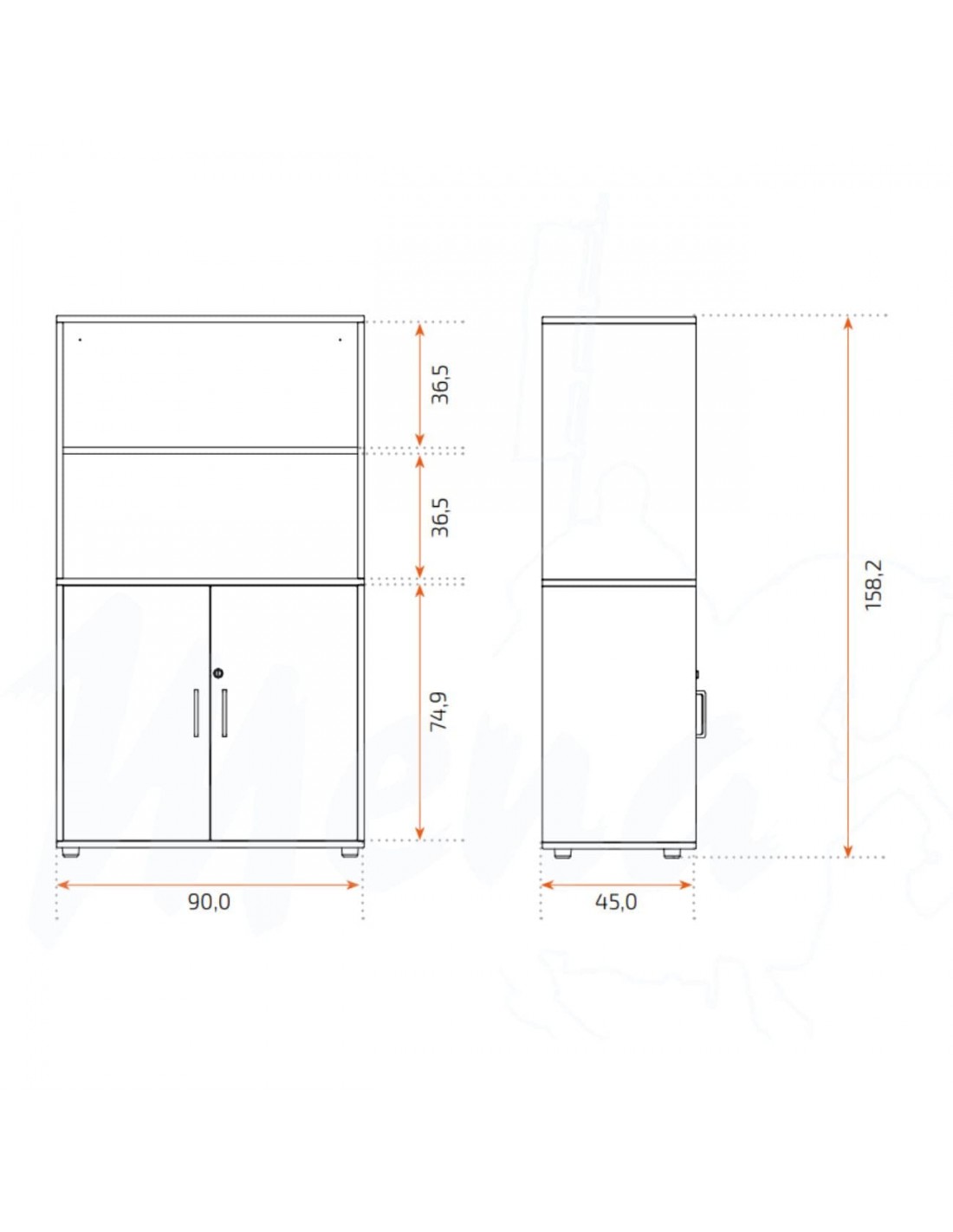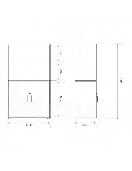 Armario escolar de 160 cm. Diseñado para ofrecer una solución de almacenamiento completa, segura y funcional en entornos educativos. Cuenta con dos espacios abiertos en la parte superior y dos puertas con espacios inferiores en la parte inferior, facilitando la organización del material escolar y siendo ideal para aulas orientadas al aprendizaje cooperativo. Las puertas están disponible en varios colores, permitiendo adaptar el armario a la estética de cada centro. Incorpora cuatro niveladores que permit