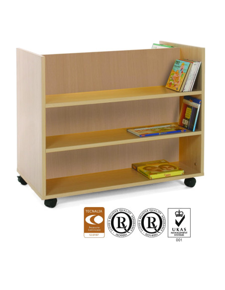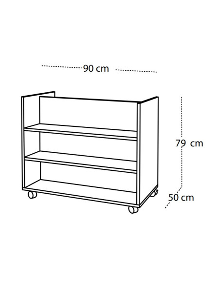 Carro librería accesible por los dos lados, divididas en tres