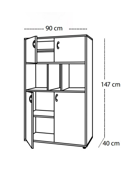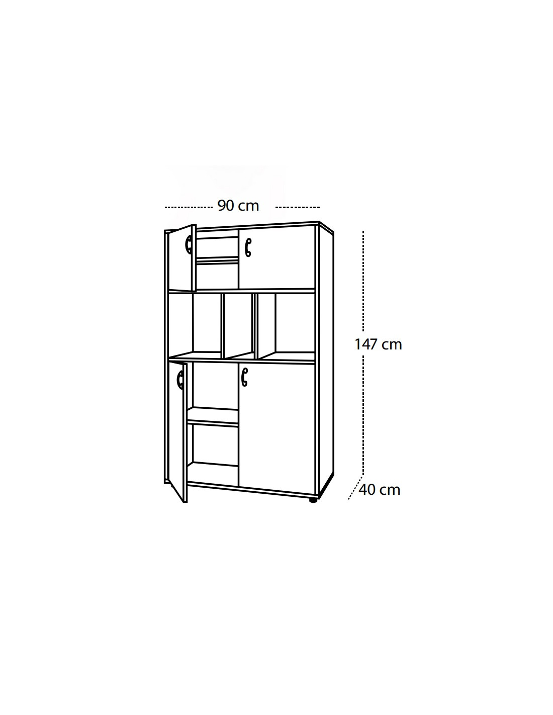 Mueble de tamaño medio con puertas en la parte inferior y superior,