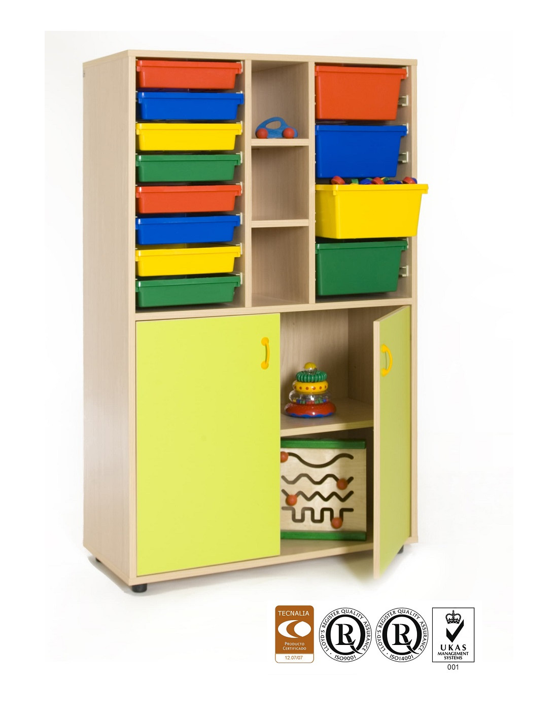Mueble de tamaño medio con puertas en la parte inferior y cubetero