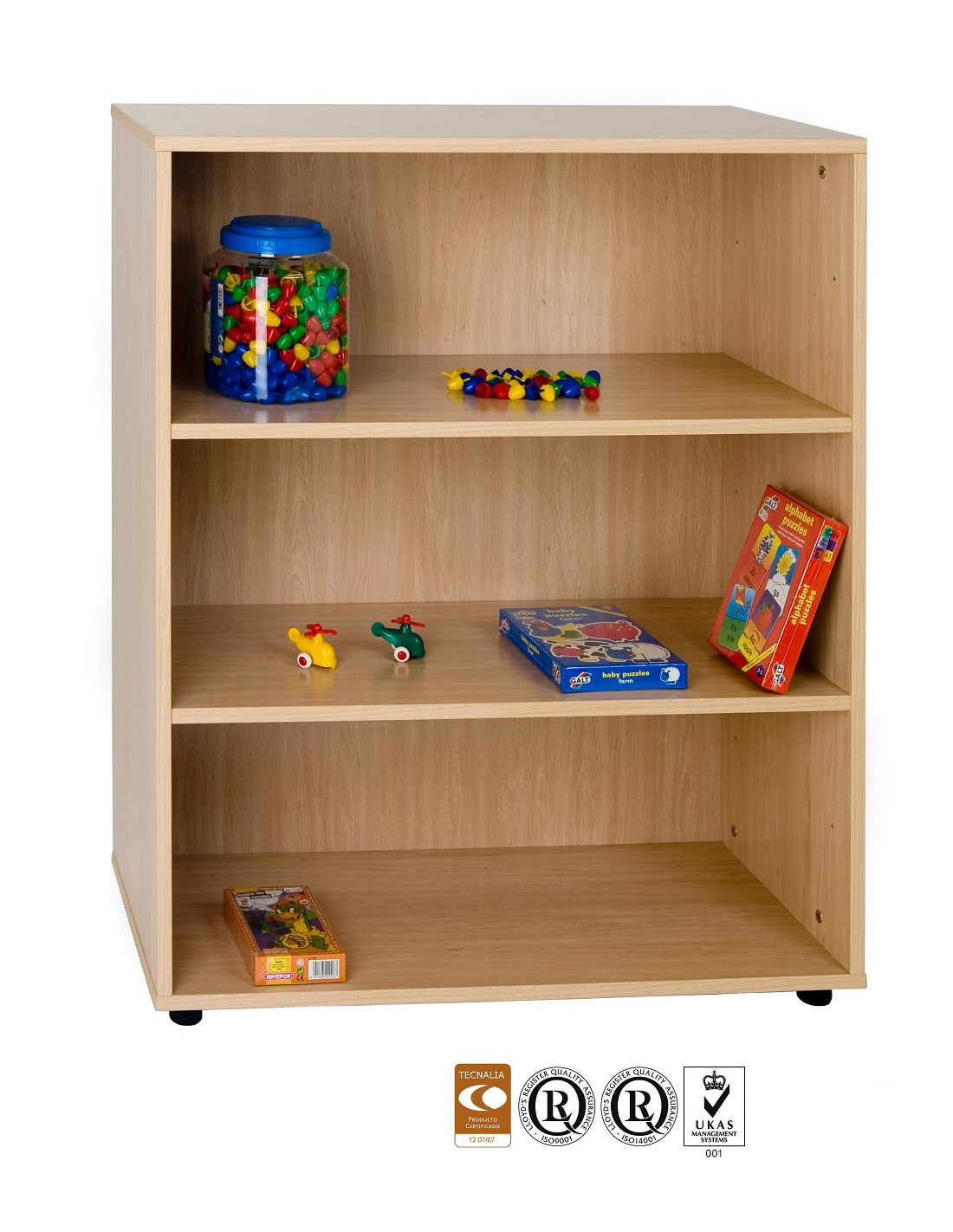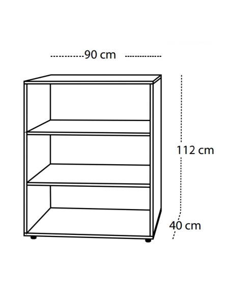Estantería abierta con tres estantes. Fabricado en melamina de haya, con cantos de PVC redondeados para prevenir heridas. Pies niveladores de PVC regulables en altura de 35 a 50 mm. Producto con certificado de calidad TECNALIA. Consultar para combinar colores de baldas y estructura. Medida 900 x 400 x 1120 mm.