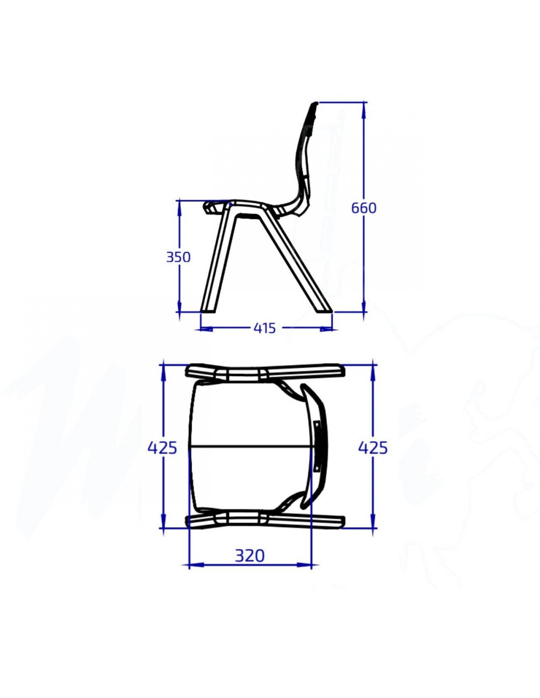 Silla escolar económica, práctica y apilable, diseñada para cubrir múltiples usos en entornos educativos.
