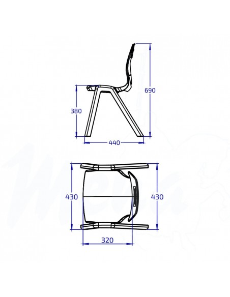 Silla escolar económica, práctica y apilable, diseñada para cubrir múltiples usos en entornos educativos.