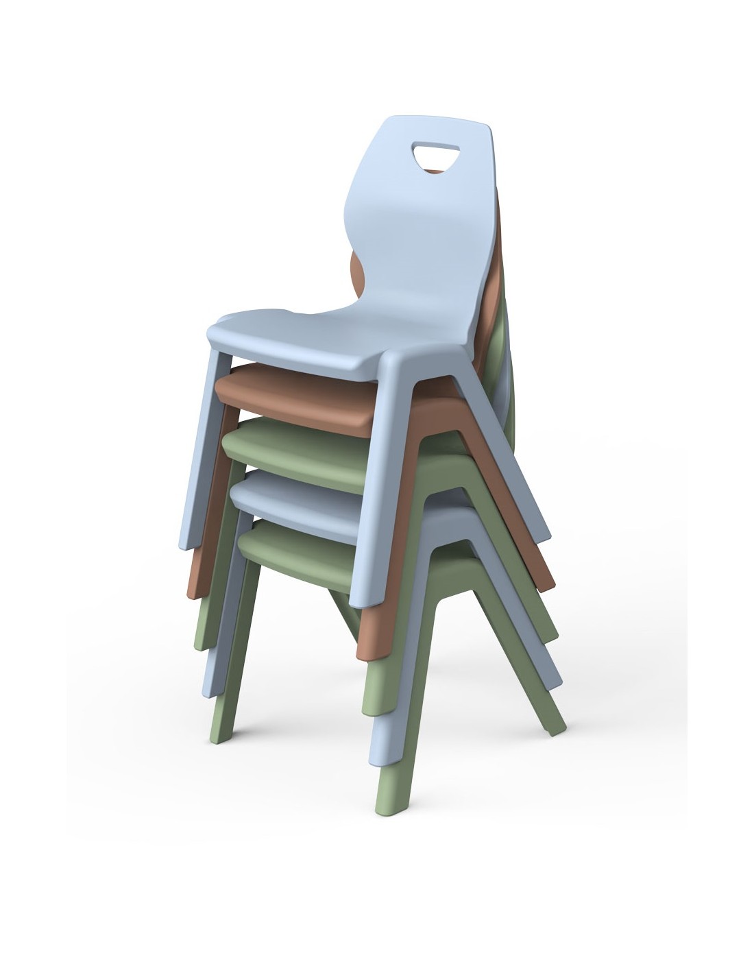 La silla esta disponible en 4 colores actuales y versátiles, facilitando su integración en diferentes ambientes educativos.