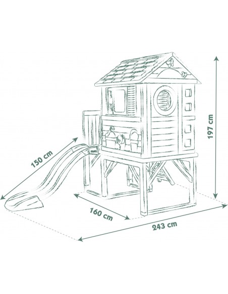 1 ventana de ojo de buey, 1 escalera y 1 tobogán de 1,50 m.