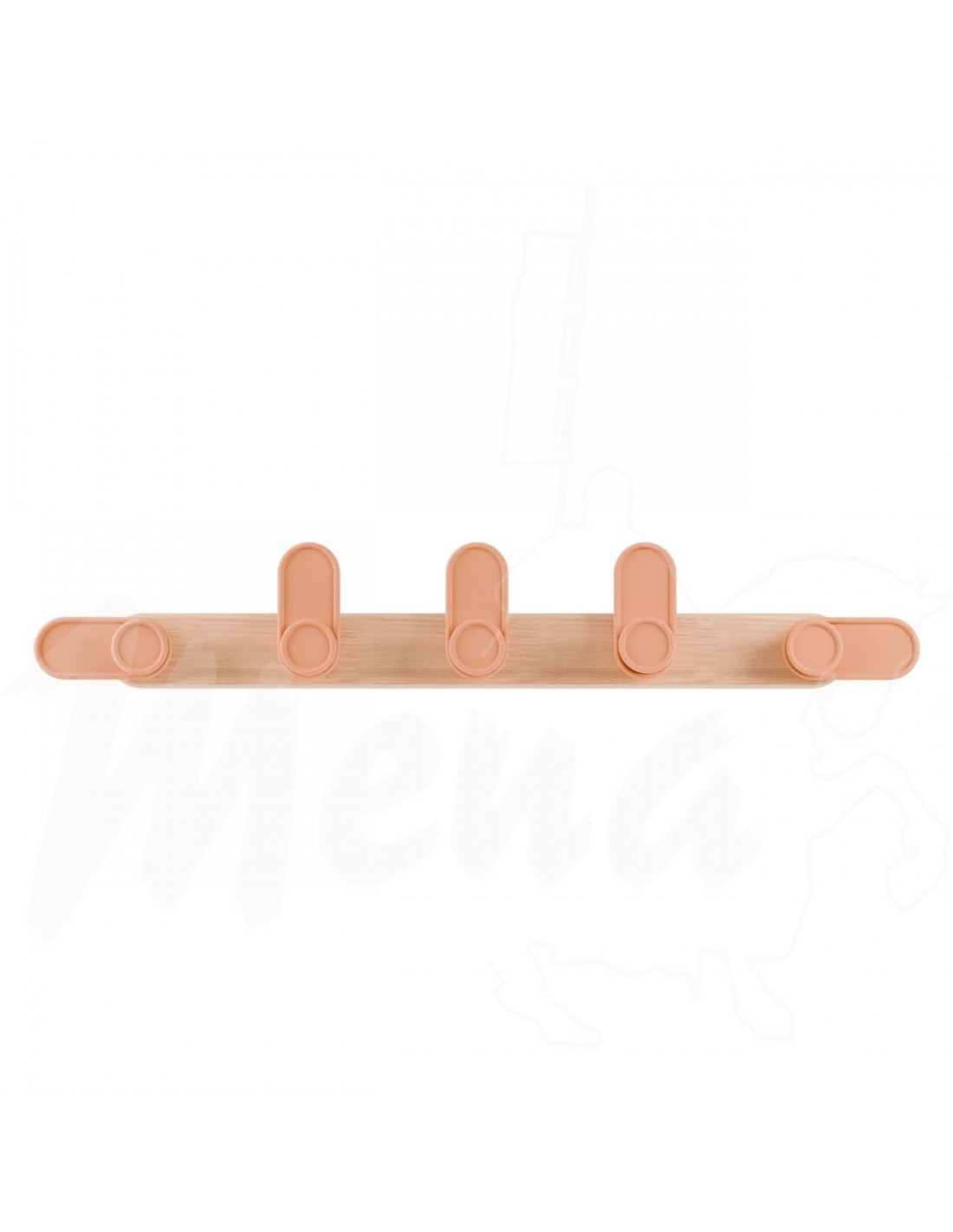 Perchero escolar con 5 colgadores combinables en orientación. Base fabricada en madera de abedul de Mainau. Los ganchos de perchero estan fabricados en Nylon y fibra de vidrio. Medida 59,6 x 11 x 5,3 cm.
