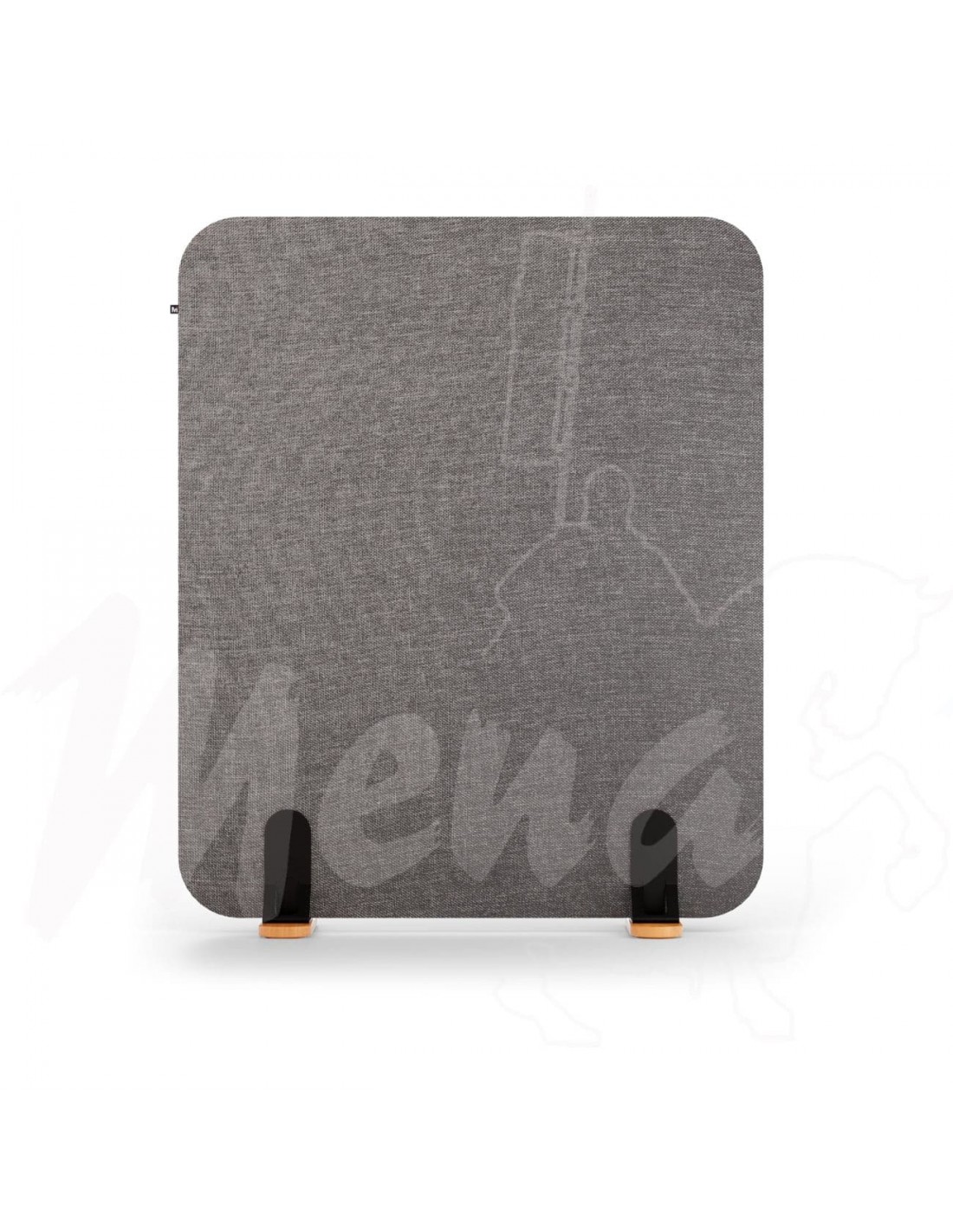 Divisor acústico fabricado de alto rendimiento. Panel de fibra de poliéster tapizado con tela acústica. Densidad de 2800 gm y resistencia a la llama Clase A Multifuncional y móvil. Certificado de emisiones C0V. Pies fabricados en metal lacados negros y madera de haya. Medida 160 x 100 cm.