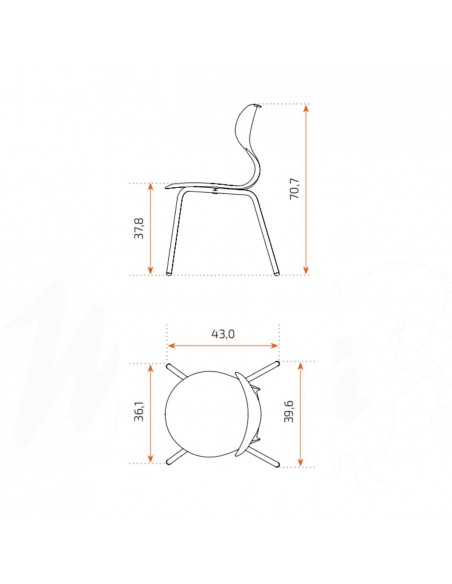 Está fabricada en polipropileno reciclado y cuenta con una estructura metálica de cuatro patas en color WARM GRAY, que aporta estabilidad y resistencia.
