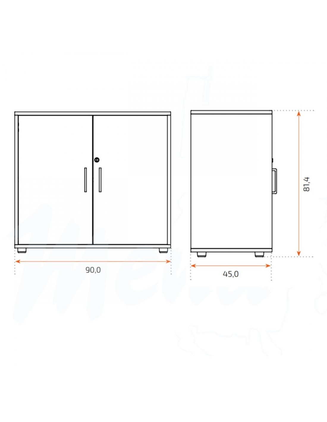 Armario escolar de 80 cm. de altura con dos puertas, diseñado para ofrecer una solución de almacenamiento seguro y funcional en entornos educativos.