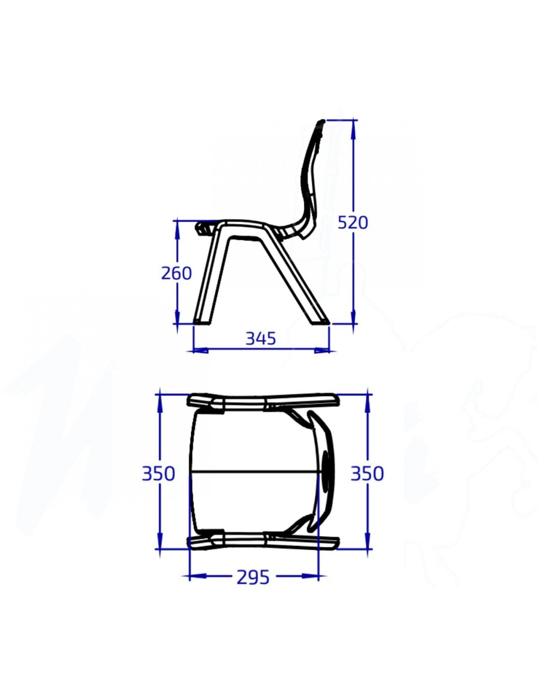 Silla escolar económica, práctica y apilable, diseñada para cubrir múltiples usos en entornos educativos.