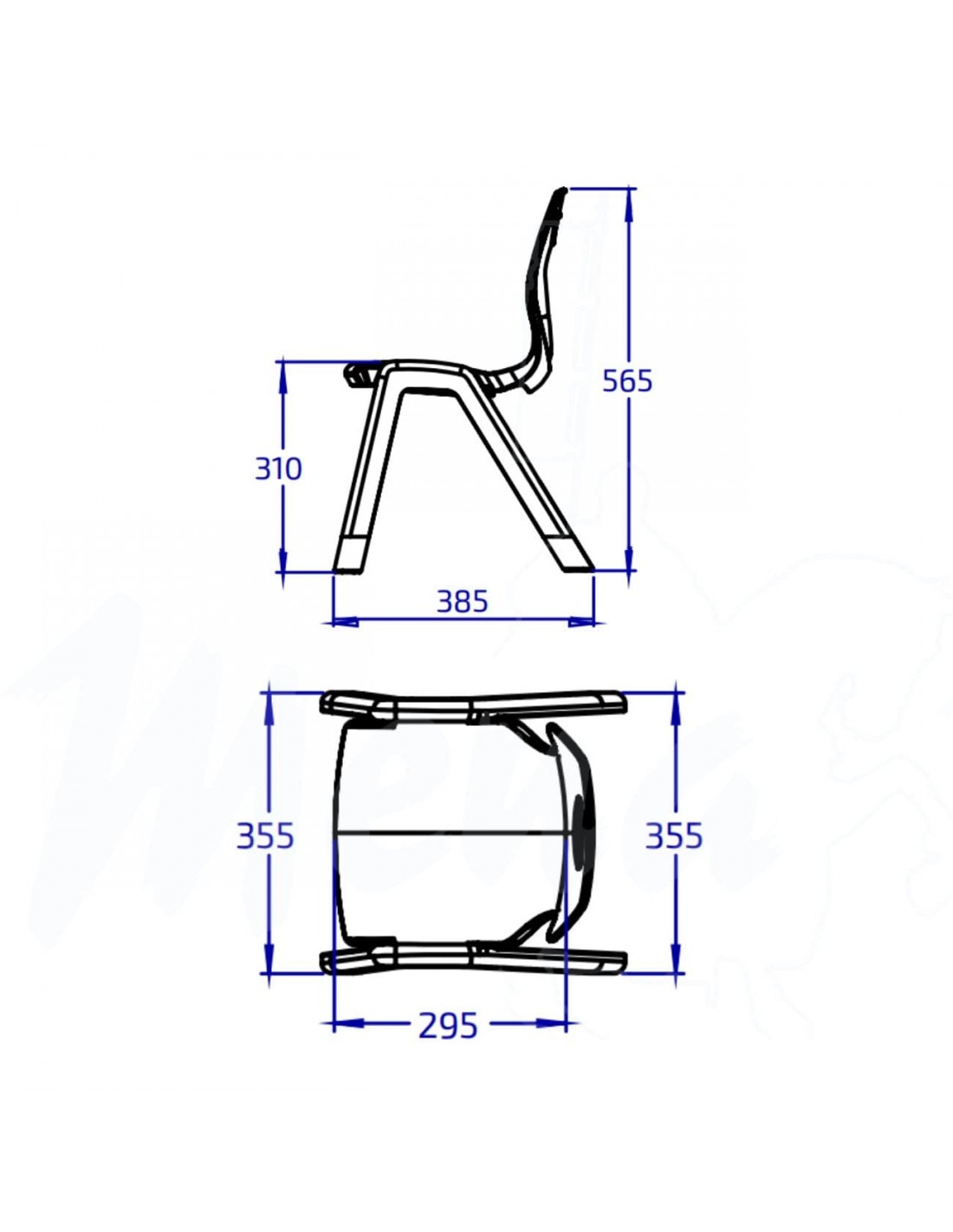 Silla escolar económica, práctica y apilable, diseñada para cubrir múltiples usos en entornos educativos.