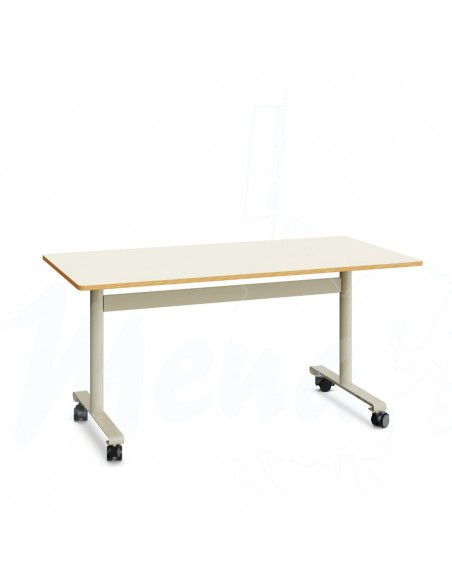 Mesa escolar abatible con estructura metálica robusta y acabado en madera de arce, diseñada para combinar funcionalidad, resistencia y estética en entornos educativos. Incorpora un sistema plegable que facilita su uso diario y permite un almacenamiento práctico, optimizado el espacio disponible en aulas, bibliotecas y salas multiusos. Dispone de ruedas de alta resistencia con sistema de freno, lo que garantiza un movilidad sencilla y un uso seguro durante las actividades. Su diseño apilable horizontalmen